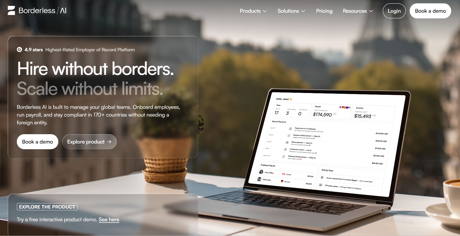 Borderless AI stands out as an Employer of Record (EOR) platform that helps companies hire, manage, and pay global talent with speed and confidence. The platform combines local compliance expertise with AI-driven automation, making it easier for businesses to onboard employees, manage payroll, and stay compliant across multiple countries without setting up local entities.