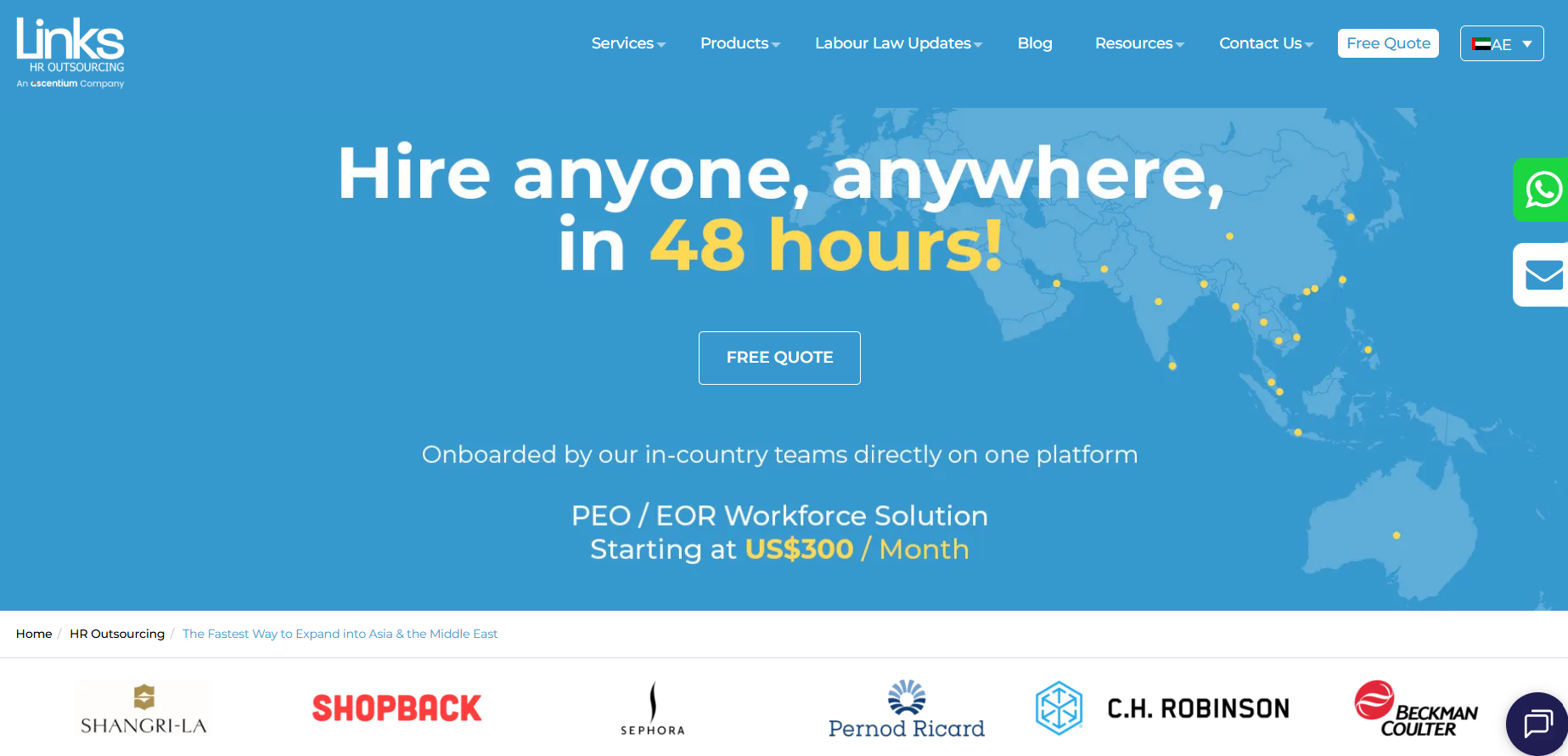 Links International provides comprehensive HR outsourcing and Employer of Record services across Dubai and the wider Asia-Pacific and Middle East regions. Its EOR offerings include payroll management, statutory compliance, employee benefits administration, and HR advisory services, making it a strong choice for enterprises seeking end-to-end HR support during regional expansion.