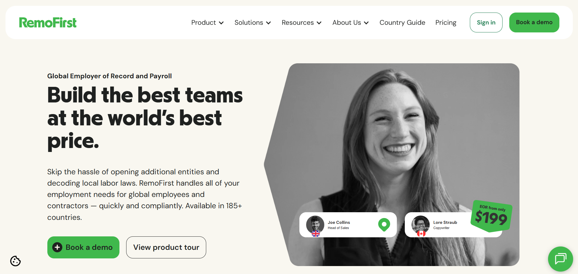 RemoFirst provides cost-effective Employer of Record services in the UAE and over 180 countries worldwide. It allows businesses to legally hire, onboard, and pay employees while remaining compliant with local labor regulations. With a focus on affordability and speed, RemoFirst is well suited for startups and small to mid-sized businesses.